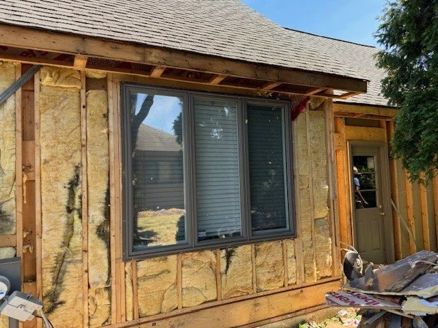 Project Summary: This house a fair amount of rotted cedar siding and trim and needed to be painted. An estimate for this was almost $20,000. After researching James Hardie and the value it brought to the home in terms of maintenance and re-sale value they decided to move forward with replacing the siding and trim. There was no solid substrate under the siding so OSB was installed over the studs followed by house wrap and then siding. The finished product was fantastic. Not only is it functional but beautiful as well. This elimiates the need for costly maintenance and will save money moving forward.